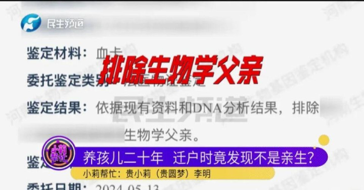 据河南广播电视台民生频道报道,河南濮阳的南先生(化名)表示,自己和前妻在2003年结婚,婚后育有一儿一女,2015年和妻子离婚,女孩跟着前妻,男孩跟着自己,直到今年已经独自抚养了儿子10年。由于儿子的户口是在前妻名下,前年南先生想把户口迁回自己的老家,而迁户口需要做亲子鉴定,结果却显示儿子生父并非南先生。